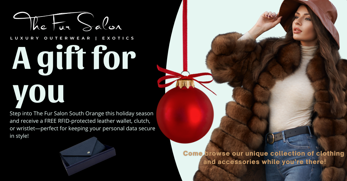 Step into The Fur Salon South Orange this holiday season and receive a FREE RFID-protected leather wallet, clutch, or wristlet—perfect for keeping your personal data secure in style!